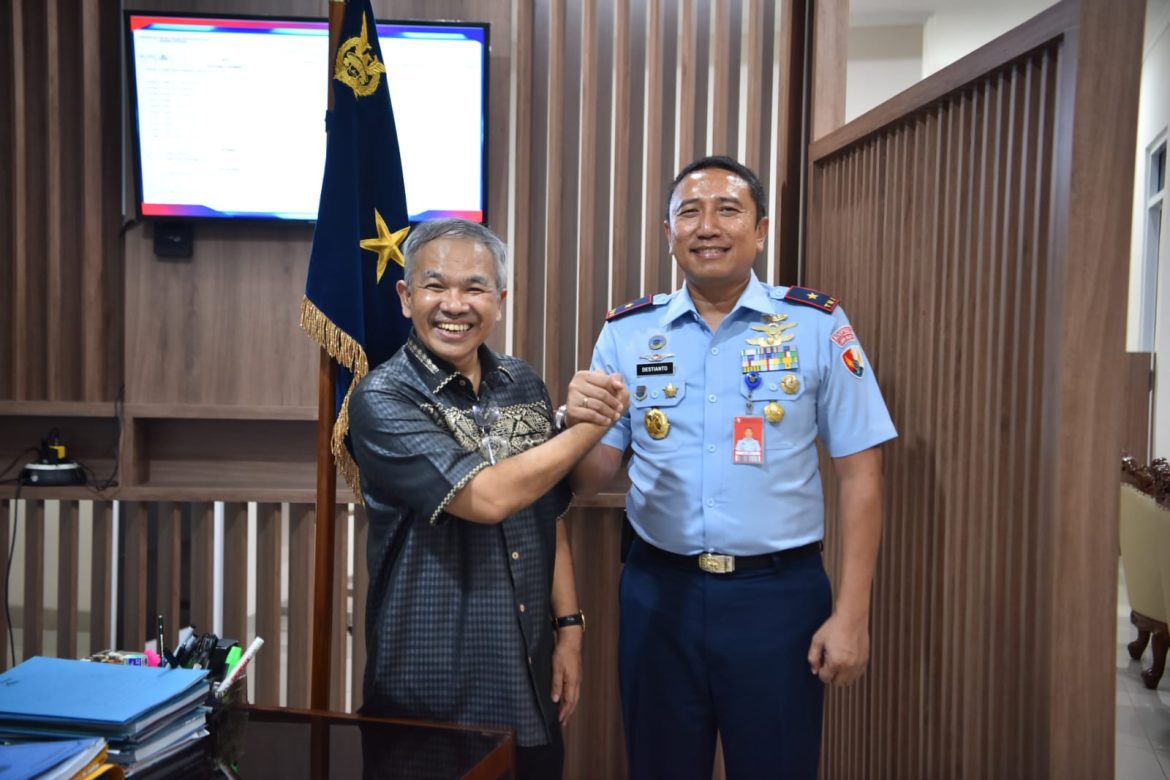 Dr Aqua Dwipayana bersama Komandan Lanud Halim Perdanakusuma Marsekal Pertama TNI Destianto Nugroho Utomo, S.T., M.Han saat berada di dalam ruang kerja. Foto: dok. dr Aqua