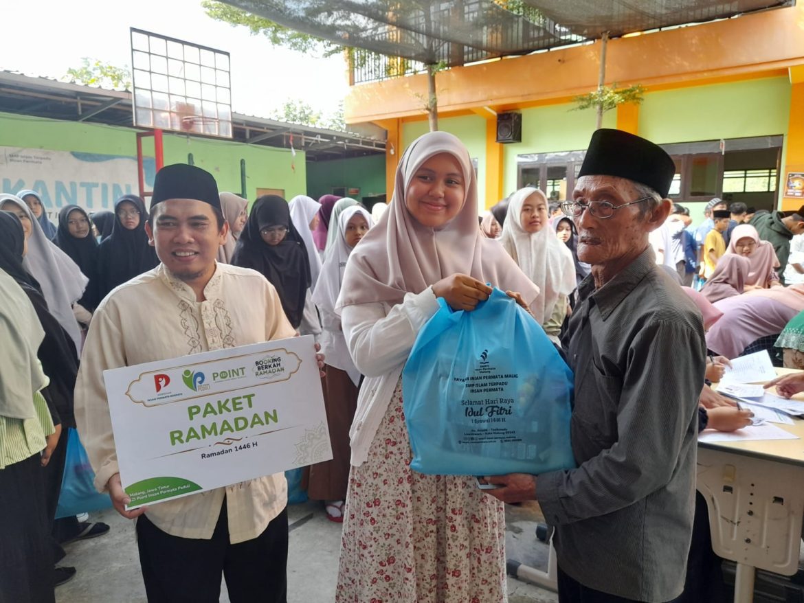 HaiMalang.com – SMP Islam Terpadu (IT) Insan Permata Malang menggelar bakti sosial berupa pembagian bingkisan Lebaran untuk warga kurang mampu serta bazar pakaian murah berkualitas pada Kamis (20/3/2025). Kegiatan ini merupakan bagian dari rangkaian Pondok Ramadan yang rutin diadakan setiap tahun.
