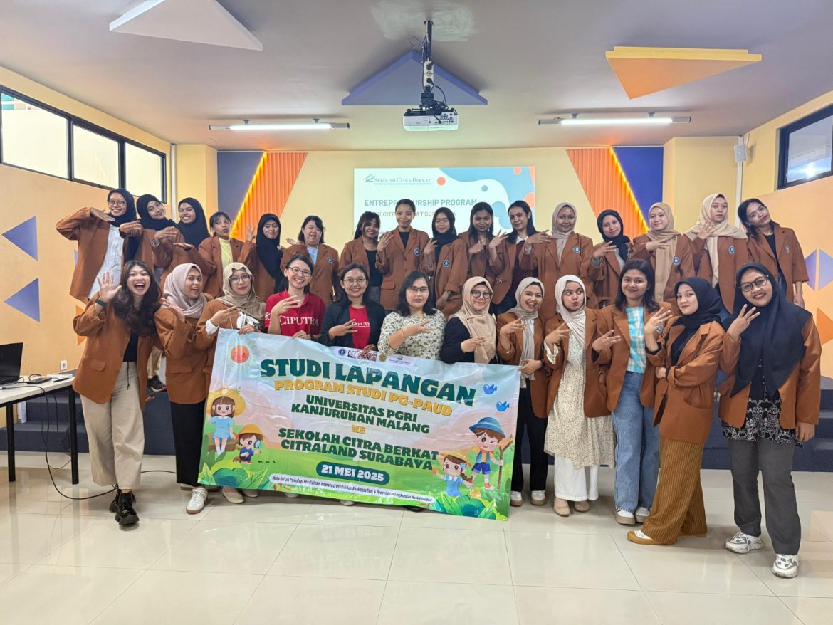 HaiMalang.com – Guna memperkaya pemahaman praktis mahasiswa mengenai pendidikan anak usia dini, Program Studi Pendidikan Guru PAUD (PG-PAUD) Universitas Kanjuruhan Malang (Unikama) mengadakan kunjungan edukatif ke Sekolah Citra Berkat yang berlokasi di kawasan Citraland Surabaya, Rabu (21/05/2025).