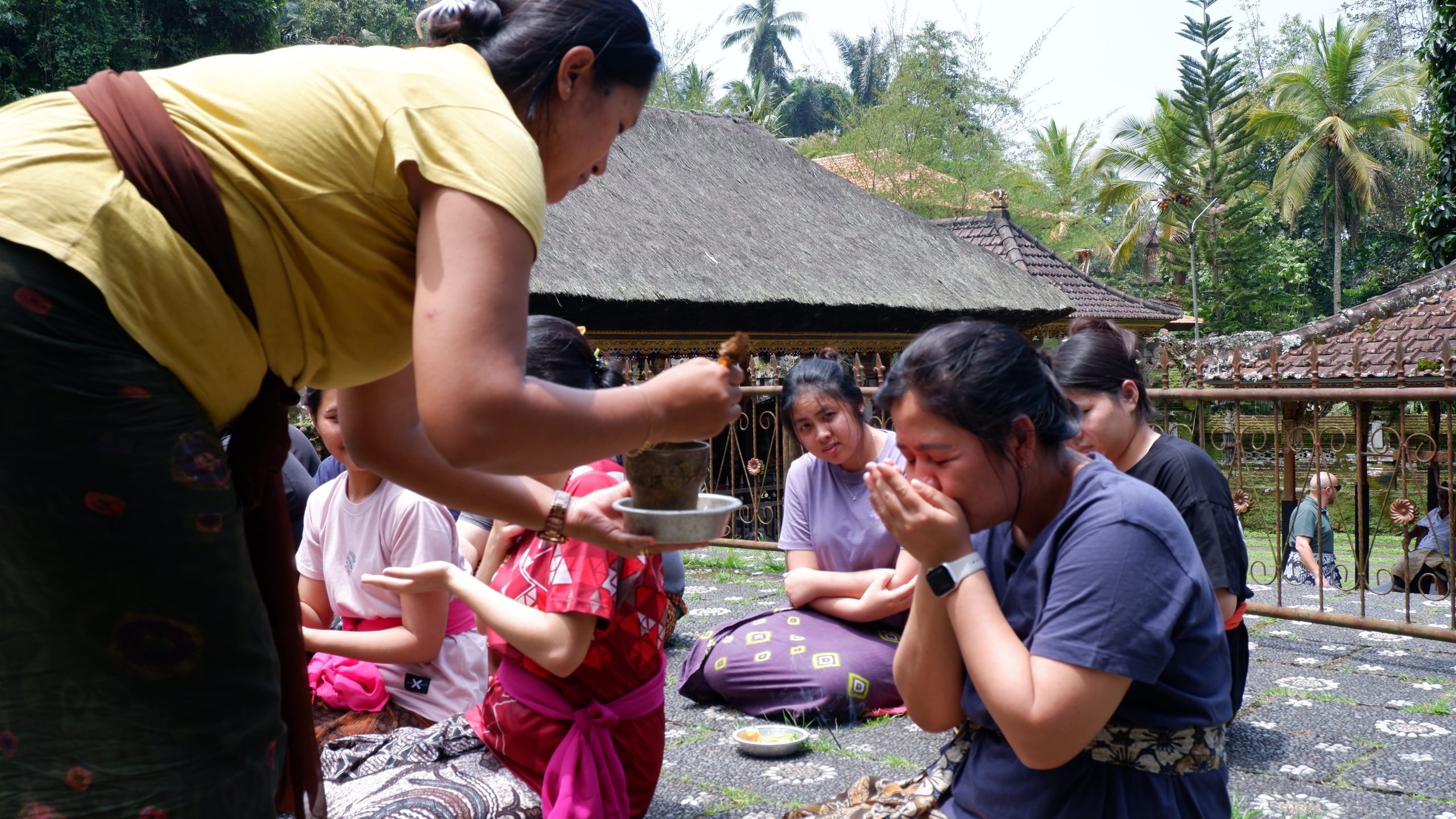 Setelah berdoa, para peserta akan memasuki sumber air yang diyakini suci lalu membasuh wajah dan kepala dengan air suci tersebut. Setelah itu, peserta diarahkan untuk meminum sedikit air suci dan berdoa dengan tujuan khusus.