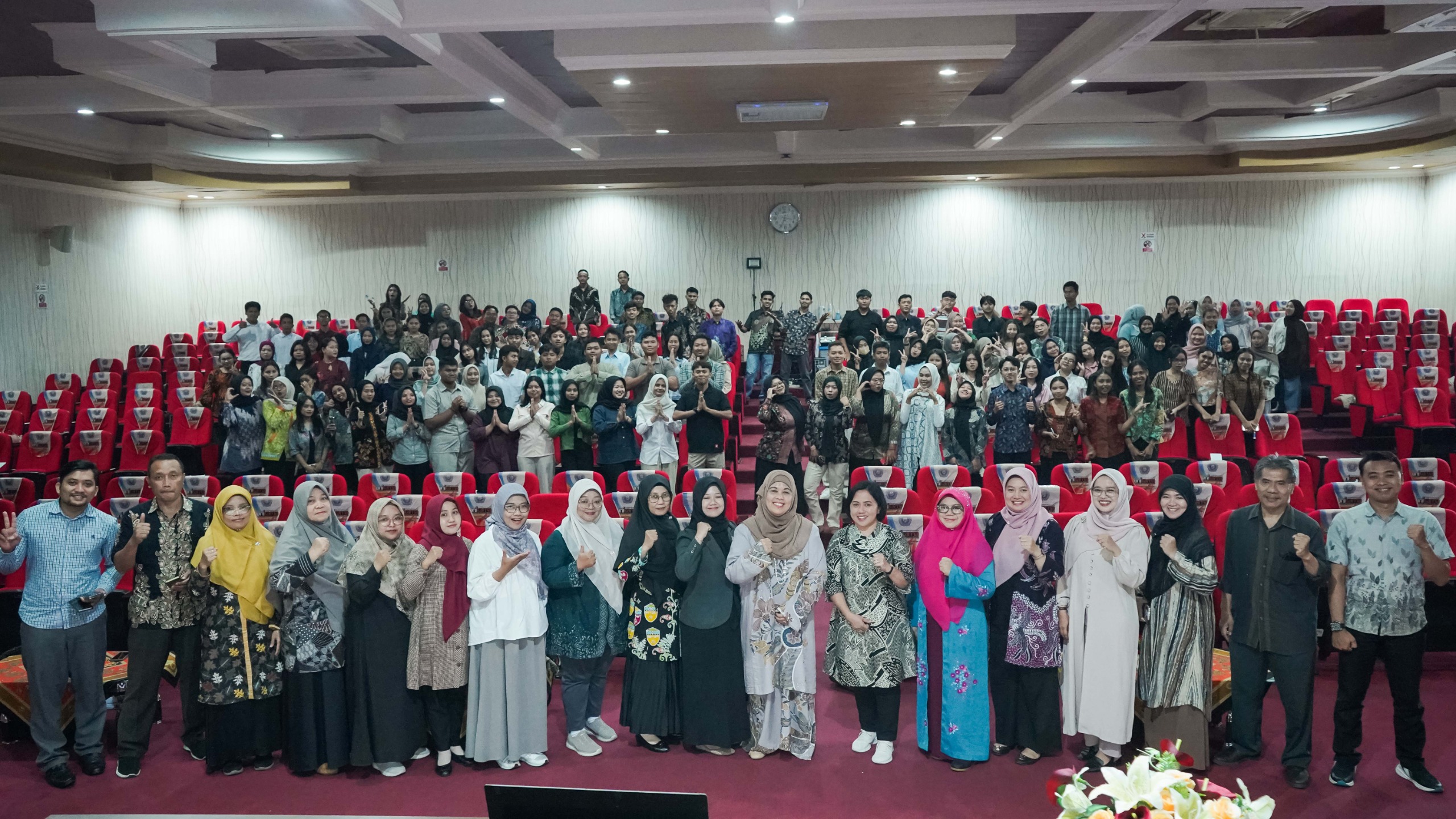 Ratusan mahasiswa hadir dalam kegiatan ini untuk mendengarkan paparan dari narasumber utama, Prof. Dr. Fonny Dameaty Hutagalung, pakar dari University of Malaya.